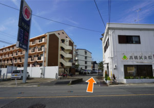 府道22号線(八幡・木津線)から当院の駐車場に入る道が少し狭くなっております。